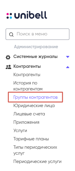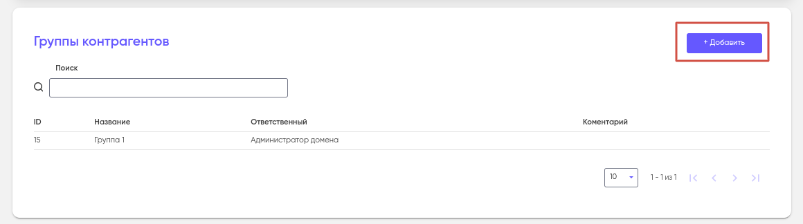 Для того что бы создать группу контрагентов перейдите на соответствующую страницу: