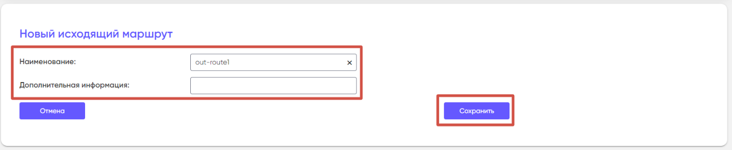 Для добавления нового исходящего маршрута нужно нажать на кнопку «+ Добавить»: