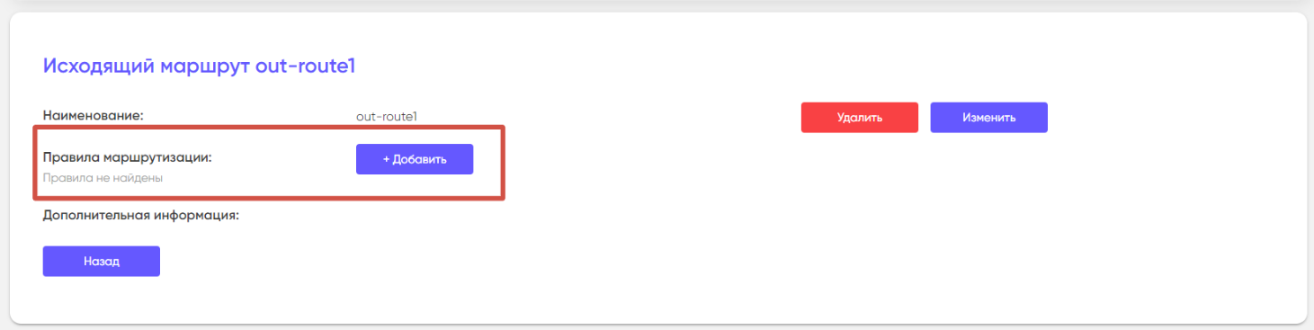 После создания нового исходящего маршрута добавьте в него Правила маршрутизации.