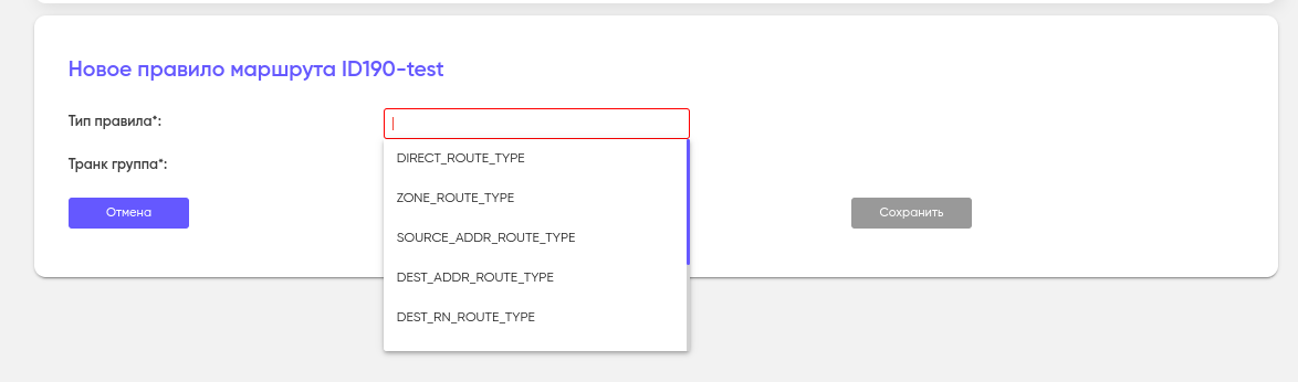 SOURCE_ADDR_AND_ZONE_ROUTE_TYPEМаршрутизация в указанную транковую группу, которая связана с транком напрямую, и весь трафик, исходящий от определенного A-номера и находящийся в указанной зоне, должен быть направлен через указанный тип транка