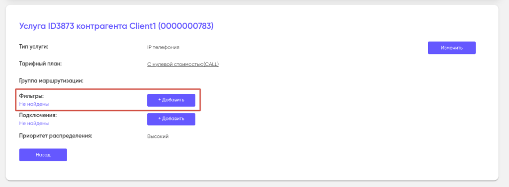 Созданные фильтры привязываются в качестве компонента настройки к конкретной услуге того или иного контрагента: