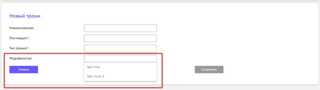 После того как Модификатор создан, он назначается транкам Поставщиков.