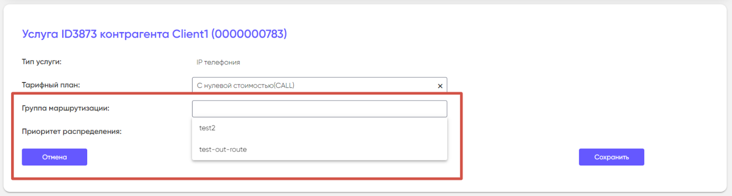 Механизм групп исходящей маршрутизации позволяет централизовано изменять исходящий маршрут для всех услуг, в которых указана данная группа. Для того чтобы изменить маршрут для группы услуг достаточно переназначить маршрут в настройках группы.