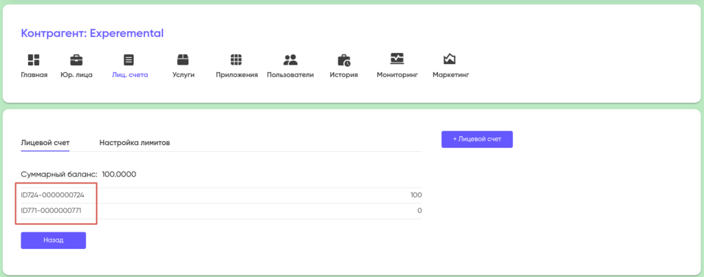 Лицевой счет контрагента — это идентификатор, который используется для оплаты используемых контрагентом услуг.