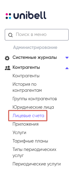 Все лицевые счета контрагентов для быстрого доступа к ним, хранятся в разделе «Лицевые счета».