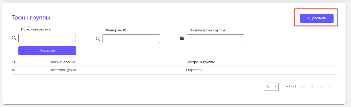 Для того, чтобы создать новую транк группу нажмите «+ Добавить».