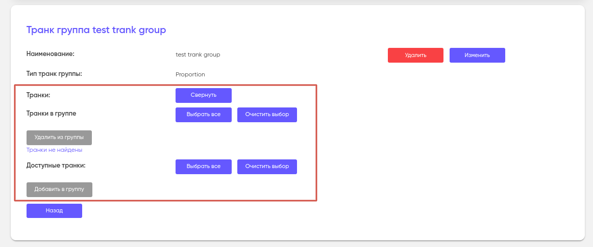 Транковые группы создаются и хранятся в разделе «Транк группы».