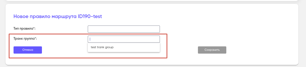 После того как транковая группа создана, она доступна для назначения при создании правила маршрутизации (см. Исходящие маршруты).