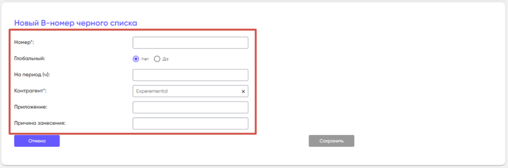 Если указываемый номер должен блокироваться для всех контрагентов, то поставьте настройку Глобальный в положении «Да». Если же номер должен быть заблокирован для конкретного контрагента, переведите настройку в положение «Нет» и выберите нужного Контрагента из выпадающего списка. Также по желанию вы можете указать причину занесения номера в черный список.