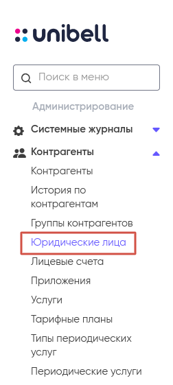 Система содержит раздел, в котором хранятся все юридические лица контрагентов. Воспользуйтесь им для быстрого доступа к тому или иному юридическому лицу.