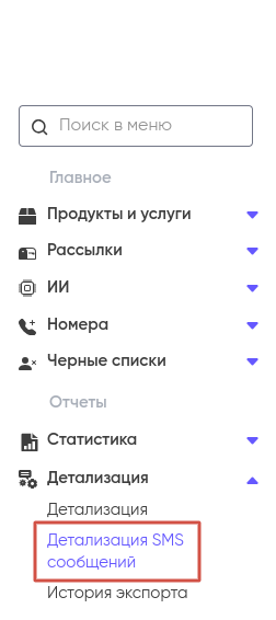 Для получения отчета перейдите в раздел «Детализация SMS сообщений» личного кабинета:
