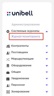 В разделе «Системные журналы» доступен «Журнал мониторинга», в котором отображаются события по контрагентам.