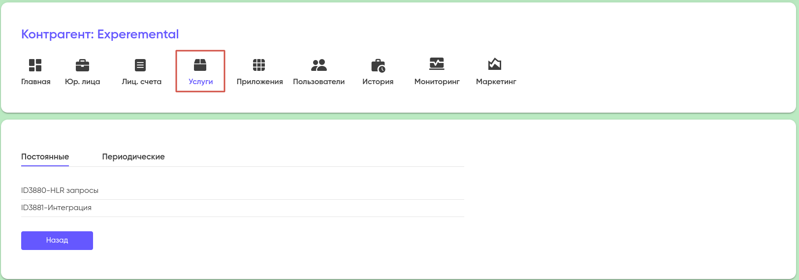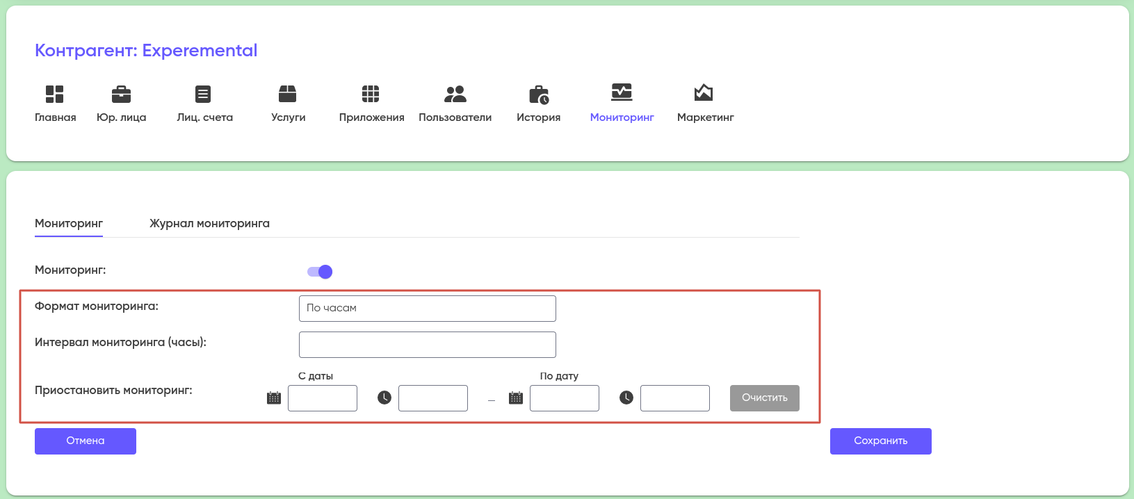 При включении мониторинга на контрагенте автоматически активируются все подключенные услуги для отслеживания активности клиента.