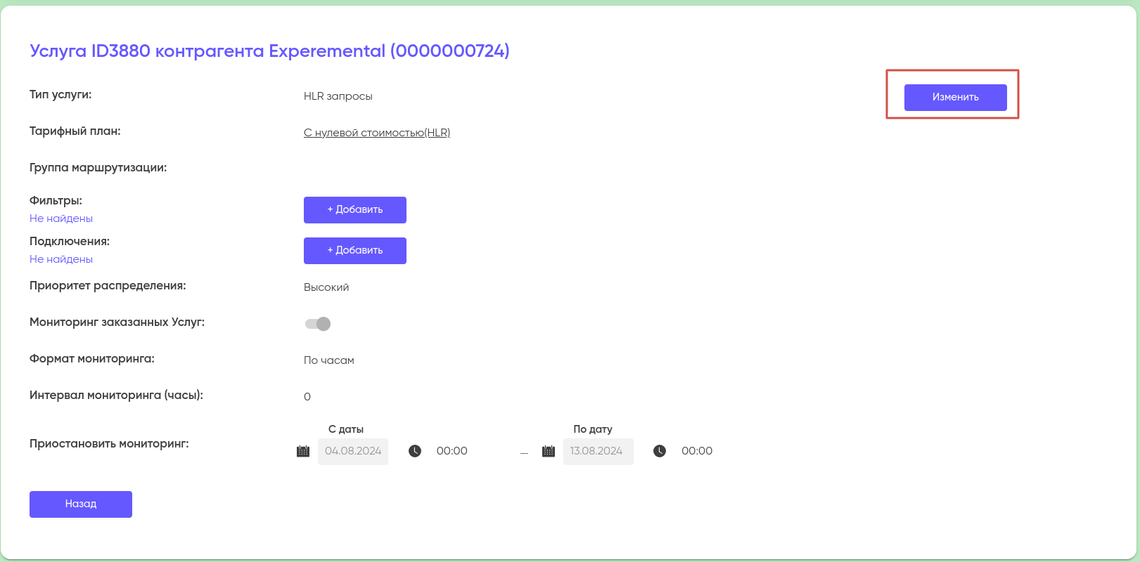 Для изменения настроек мониторинга для конкретной услуги, нажмите кнопку «Изменить».