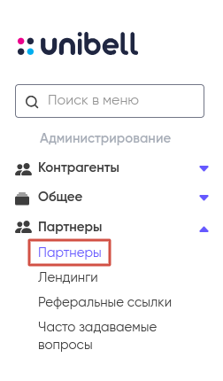 Для перехода к списку Партнеров нажмите на соответствующий пункт в главном меню личного кабинета.