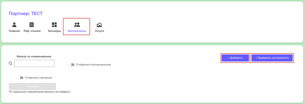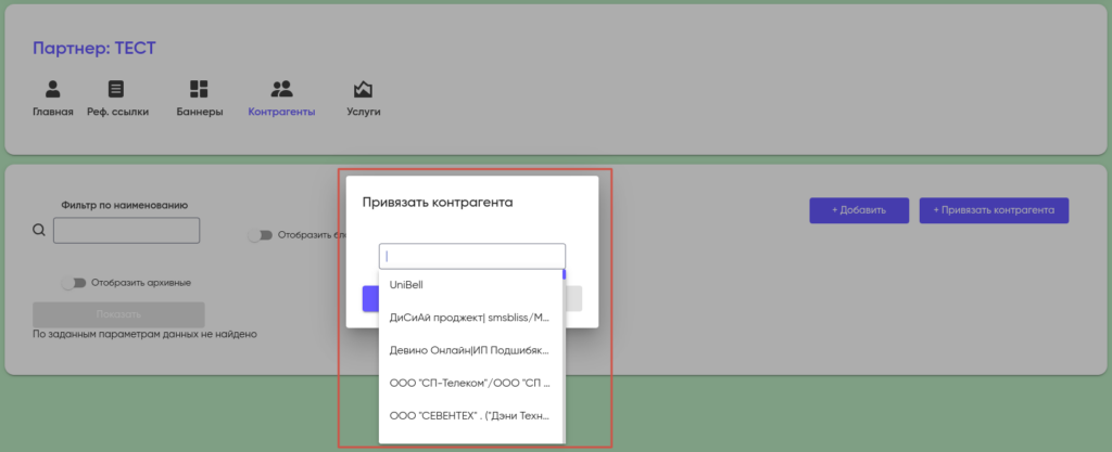 После чего нажмите «Добавить» и контрагент будет привязан к партнеру:
