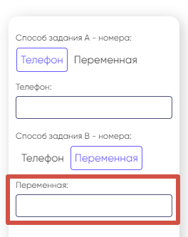 В зависимости от логики вашего сценария, вы можете ввести требуемый номер телефона в строке «Телефон», либо задать его через любую переменную во кладке «Переменная».