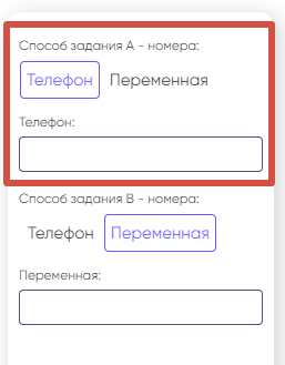 Блок настроек «Способ задания B — номера» служит для указания номера телефона, на который будет переадресовываться вызов.