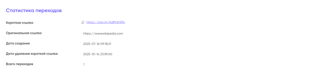 • Дата удаления короткой ссылки;