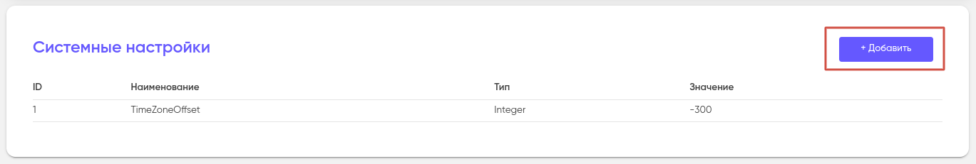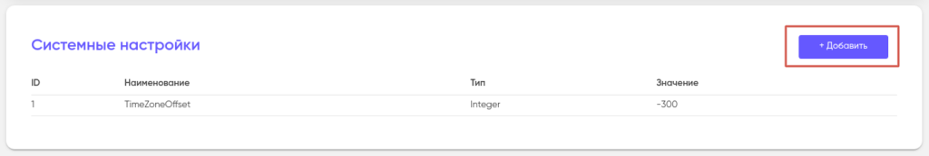 Для того, чтобы добавить новую настройку нажмите на кнопку “+ Добавить” в правом верхнем углу страницы.