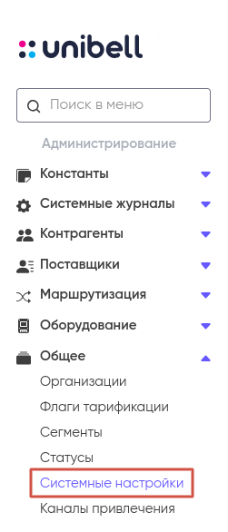 Информация о системных настройках доступна в личном кабинете в разделе «Общее» (роль Глобального администратора).