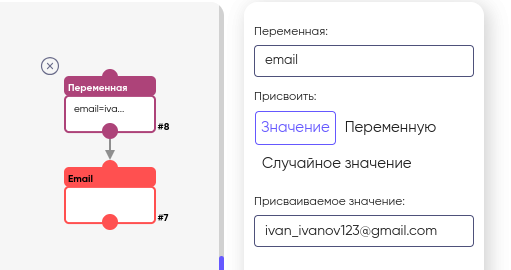 2. Укажите в поле Email адрес получателя (или передайте через «Переменную»);
