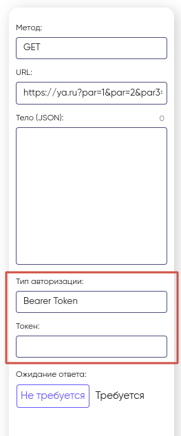 Для типа авторизации Bearer Token необходимо ввести соответствующий Токен: