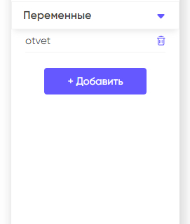 Создание переменных происходит в области “Переменные”. Для того, что бы создать новую переменную нажмите на кнопку “+ Добавить” и введите имя для вашей будущей переменной. Имя может быть любым на ваше усмотрение, может содержать буквы и цифры, но только на английском языке. Так же, вы можете добавить описание к вашей переменной в поле “Комментарий” или оставить его пустым.