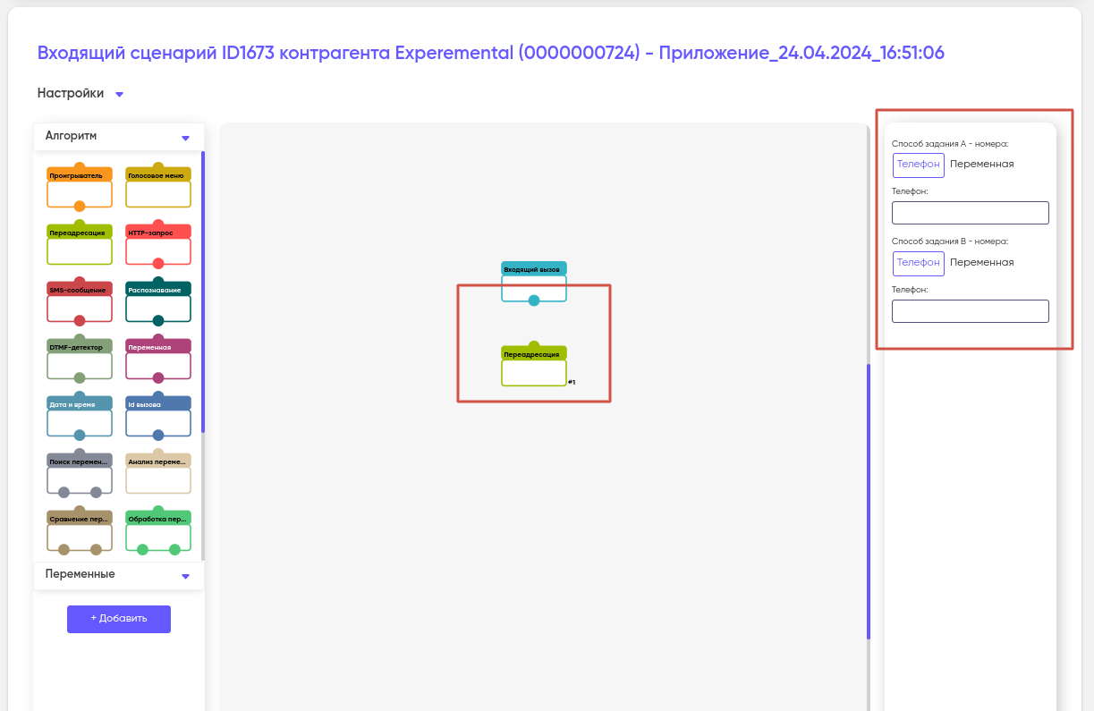 - с номером телефона — количество сценариев не может превышать число выделенных вам номеров.