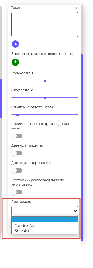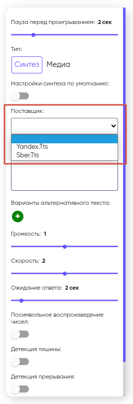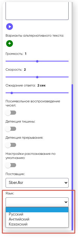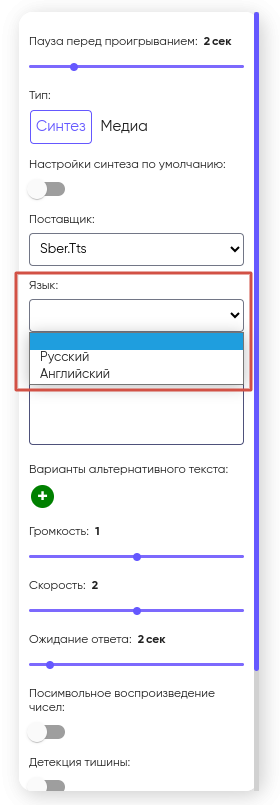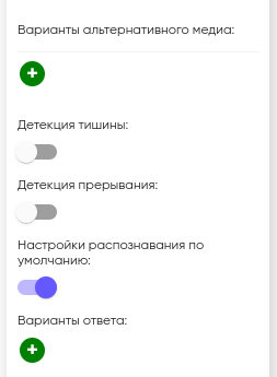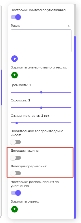 1. Если включена функция «Детекция тишины», переход на другой блок происходит через 2–3 секунды после завершения высказывания собеседника;